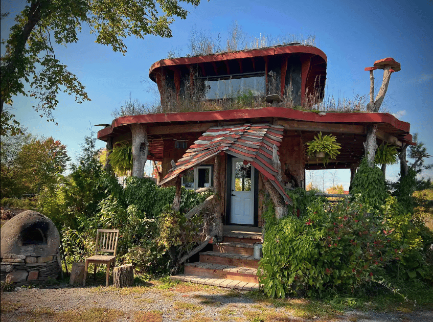 Outra solução, já pensando no envelhecimento e nas necessidades de obter dinheiro, que inevitavelmente temos, foi construir um lindo Airbnb, uma cabana inspirada nos cogumelos que com prazer aprenderam a cultivar. Além de hospedagem, a Tiny House oferece experiências, como banhos no gelo do inverno e sauna aquecida a lenha.