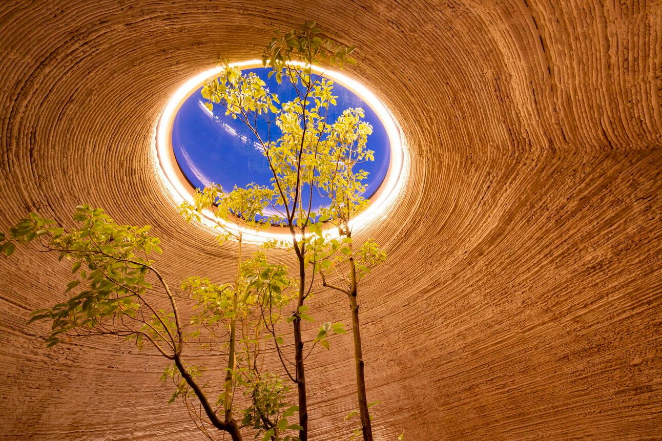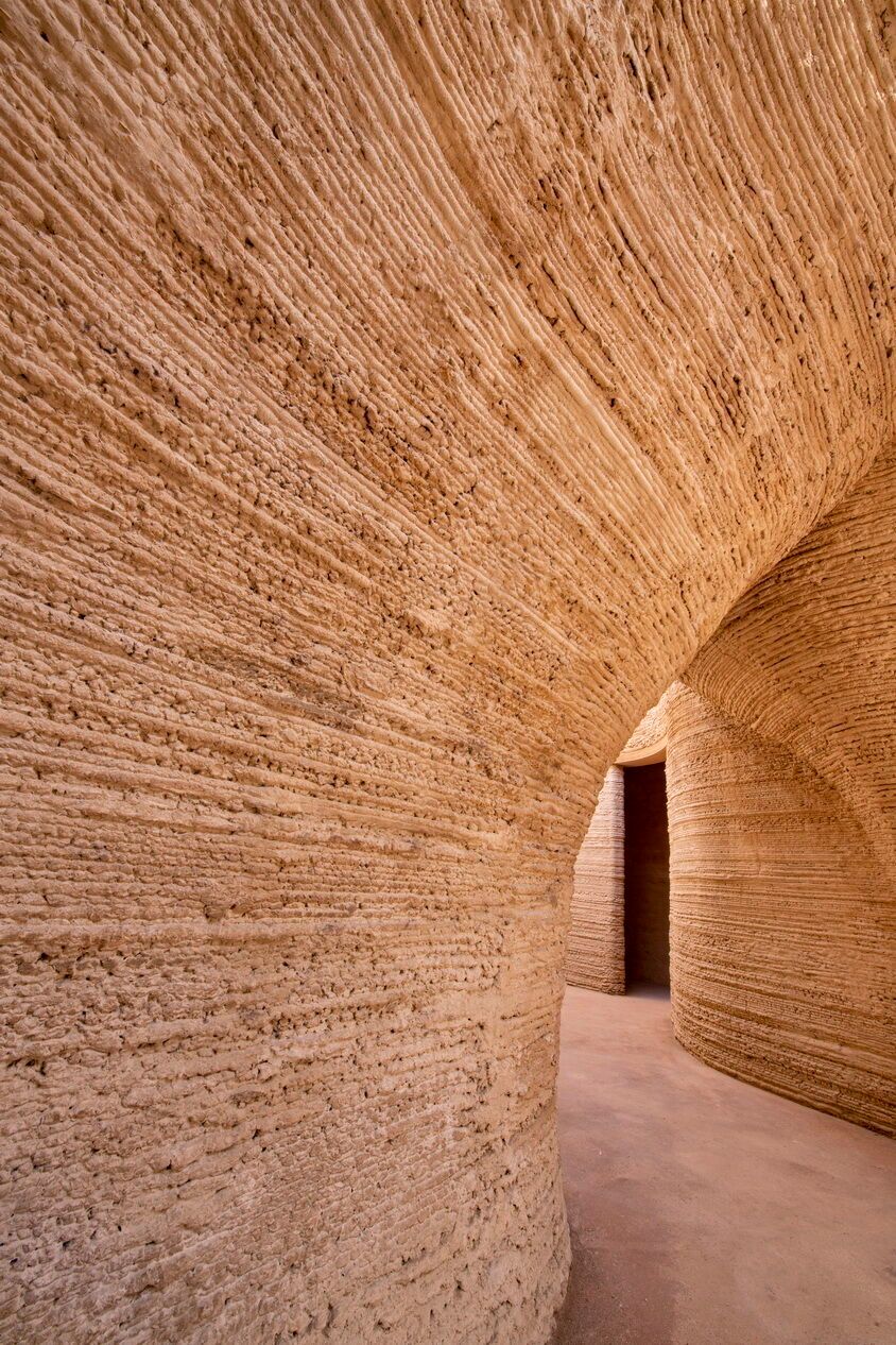A TECLA é composta por duas cúpulas interligadas, criadas através de 350 camadas de argila empilhadas. A argila utilizada é misturada com água, fibras de casca de arroz e um agente de ligação (provavelmente cimento, não achei o detalhe deste insumo), resultando em um material de construção que é abundante e economicamente acessível, perfeitamente alinhada aos princípios da Permacultura e Bioconstrução de utilizar matérias primas locais para edificar, ao invés de buscar insumos fora. Esta abordagem com impressora 3D, revolucionária na construção civil, permite a criação de estruturas robustas e eficientes, utilizando recursos locais e minimizando o impacto ambiental.