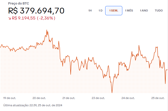 Semana 43: https://www.coinbase.com/pt-br/price/bitcoin